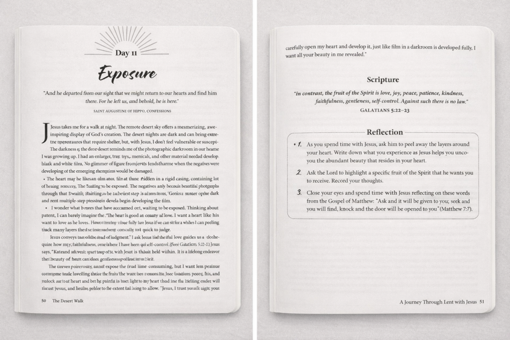 In The Desert Walk, the chapter on “Exposure” sets out to help us see that beauty resides within—waiting to be discovered and developed.